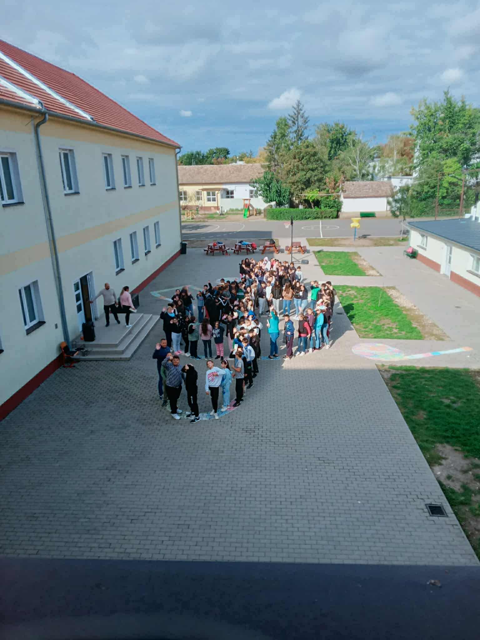 Ezen a napon iskolánk felső tagozatos tanulói és pedagógusai közös flashmobot valósítottak meg az iskola udvarán Hosszu Zsanett tanárnő vezetésével. A meglepetésszerű előadás során közösen énekeltek, ezzel ünnepelve a zene összekötő erejét és az alkotás örömét.